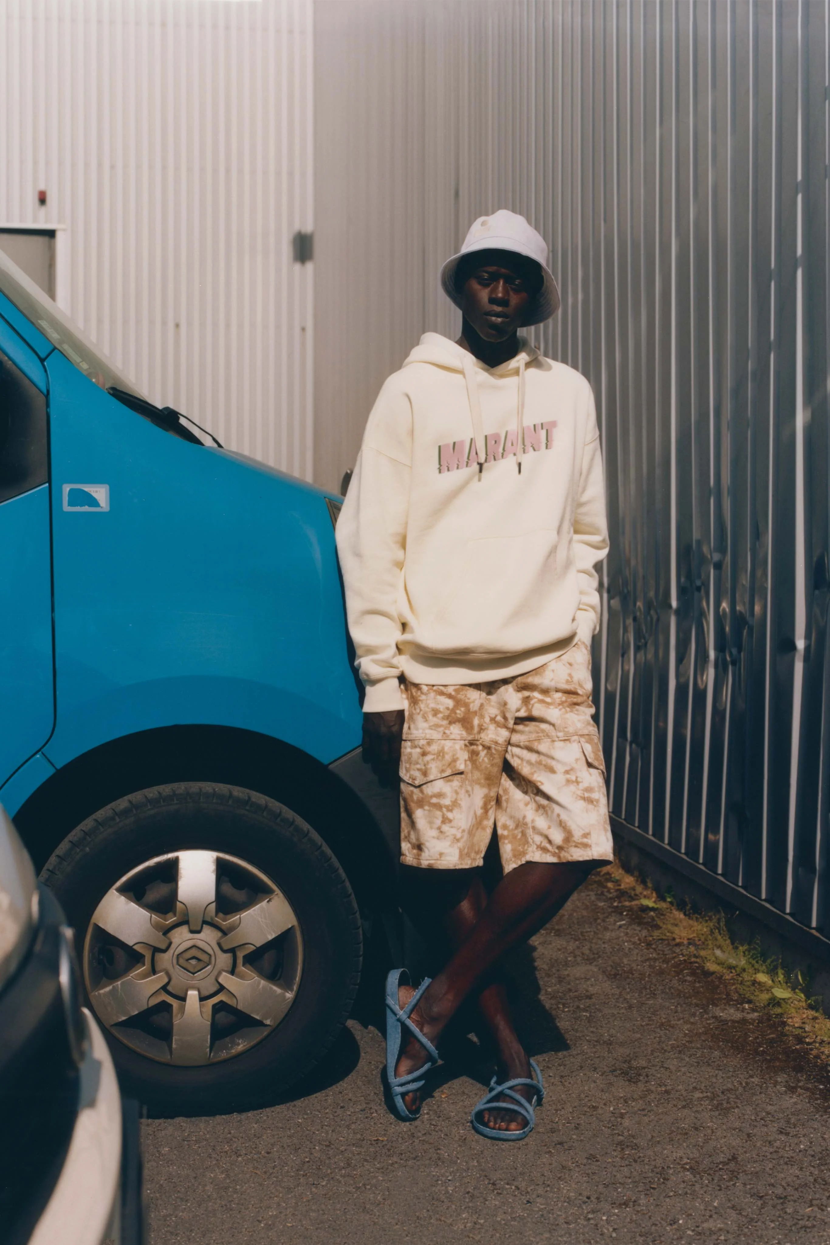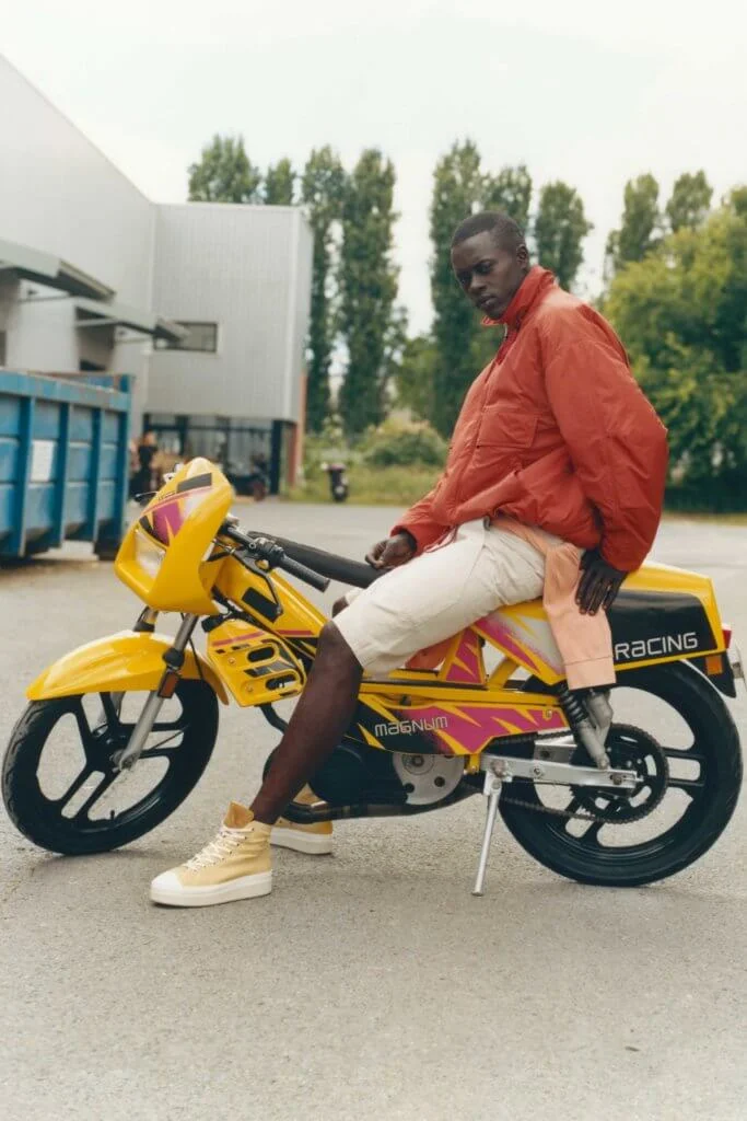 系列帶出悠閒瀟灑的感覺,彰顯低調而淳樸的態度。直筒剪裁與寬鬆的輪廓設計源自工作服和滑板文化。 口袋長褲以新的長度示人,毛衣、外衣和標誌連帽衫被繫在腰部,同款印花或面料、拼色設計的上衣和褲子,配搭出如制服般的造型。以珠片為靈感的印花、猶如明信片的衛衣,以至毛織短外套等單品組合成本季衣櫥,作為夏日和音樂會的回憶。