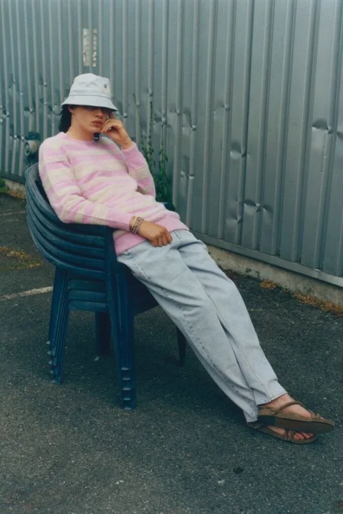 個性獨特、不追求潮流,是設計師 Isabel 的核心理念,比起轉眼即逝的潮流文化,她所創造的更多是細水長流的法式風潮。今季品牌以經漂洗、酸洗、以及丁香色的牛仔布讓人聯想起 90 年代及當時流行的音樂流派。紮染面料和層疊的條紋與圖案是代表著Grunge的經典元素,而螢光色調和印有圖案的運動裝則喚起了Techno的風潮。
