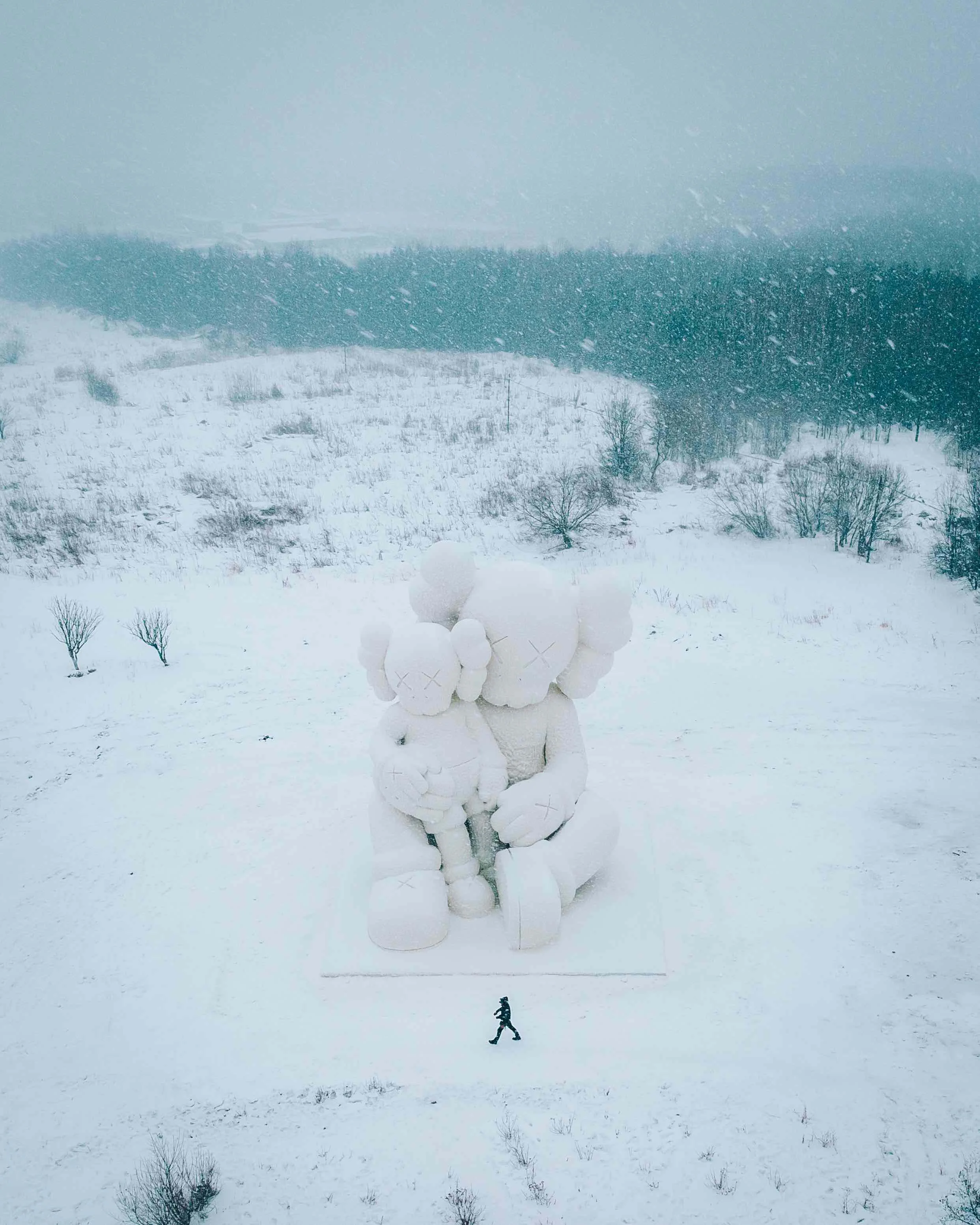 踏入新一年《KAWS:HOLIDAY》繼續帶我們去遊行,今個冬季來到⻑白山天池山腳,KAWS 以全身白雪冰雕造型登場。