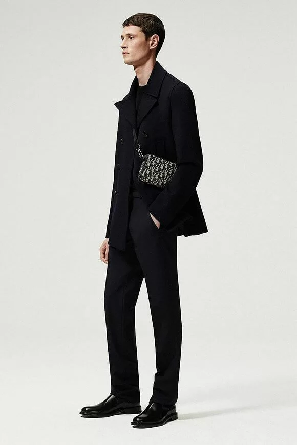 可是,販賣藝術始終存在一定的風險,因此Kim Jones亦大膽地改革品牌的西裝,以打響頭炮的2019年春夏系列為例,他所設計的西裝剪裁相對更加柔軟,肩線偏圓潤,添了幾分隨性的男裝廓形。西裝的重新剪裁讓門襟的設計也變得多樣化。除了對襟的設計以外,還增添斜對角式的斜襟設計,效果有點日式Kimono和服的感覺,十分隨性自然,其內裡不穿,只是西裝與肉體mix and match的配搭造型,不少品牌都紛紛仿考起來。又以今年秋冬系列為例,開場造型有將藝術家Raymond Pettibon的畫作以手工刺繡方式呈現,規格與高級訂製服同出一轍,又如那些「戰甲夾克」(Tactical Jackets)、在多套西裝繫上一條長長絲巾,繞過上身往下牽引,都以新穎的配搭為大家帶來新鮮感。