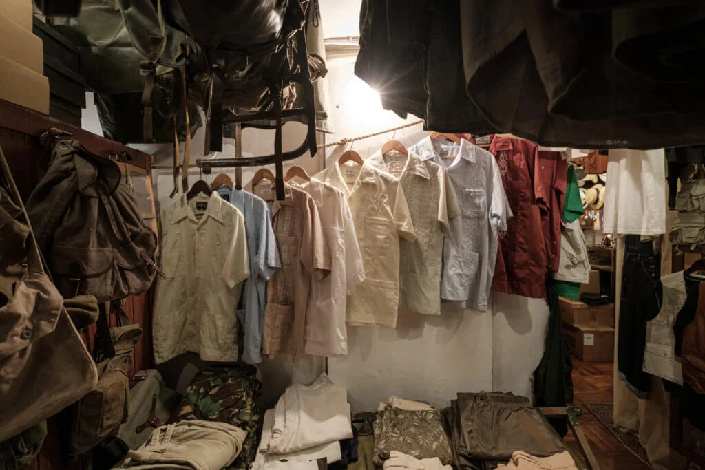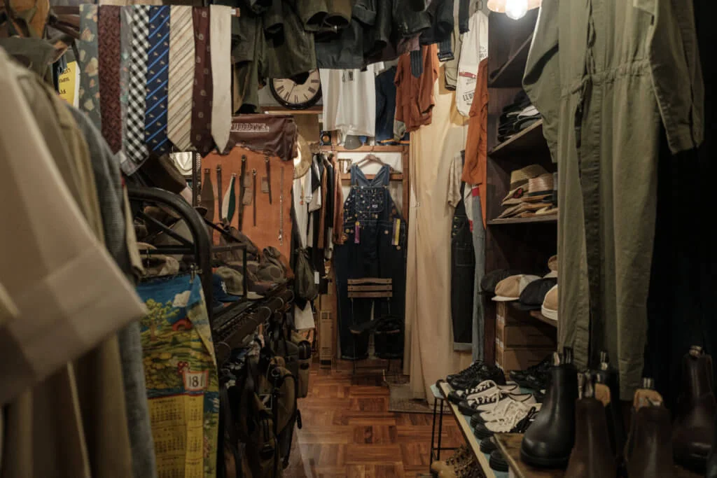 哪怕Rex的作品不分季度,作為一個設計師或是創作人,身邊和世界的所有事情也影響着他們的創作,問到他對這幾年來的時裝氛圍有什麼看法,他說現在的年輕人比幾年前的更敢於作嘗試,「曾經看到一個二十歲不到的年輕人單穿一件舊式皮革工裝背心,自信滿滿的在街上遊走,確實是一個最近比較難忘的畫面。」大概是普通人和創作的經歷這一年多來的改變,心中期盼着的即使不是重歸固貌,也希望能在僅有的空間下表現自己的美學甚至思想。「如果要我推介一件衣服,我會推介這裏的夏威夷襯衫。反正香港的冬天也不能說得上是冬天,而在這個氛圍底下,大家都希望穿上一點令人快樂的衣服。」衣服的意義,有時候不出於它的商業價值,有時太盲目追求,最後也只可能會迷失,像當年日本街頭品牌還相對小眾時,Rex說很多今天被名為「潮牌」的設計能成功,也是靠當初的那份創意,日本的設計令他知道設計概念的重要,歐洲的舊衣教會他歷史和功藝,當日Rex身穿的一條白色印花褲子,採用的時間和工藝正好就是集各家大成的證明(價格更是意想不到的相宜),而若然我們真的想在時裝中找回樂趣,與其追逐著潮流,或許更可以思考一下何謂「設計」和「衣服」。