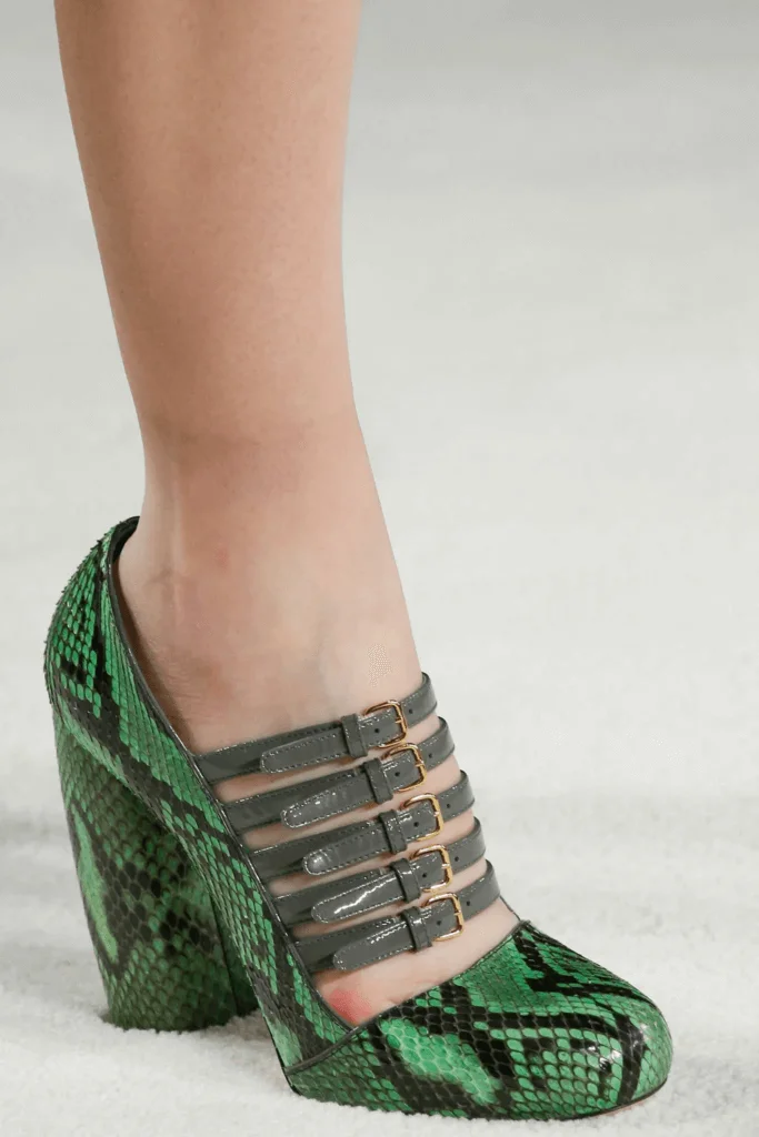 少女風代表Miu Miu絕對是Mary Jane鞋的頭號粉絲,而且每次都不會離經叛道。2015秋冬系列看上Mary Jane鞋最原始的搭帶元素,由一條變五條,雖然失去其容易穿脫的本意,但獨特又可愛的設計就是王道。