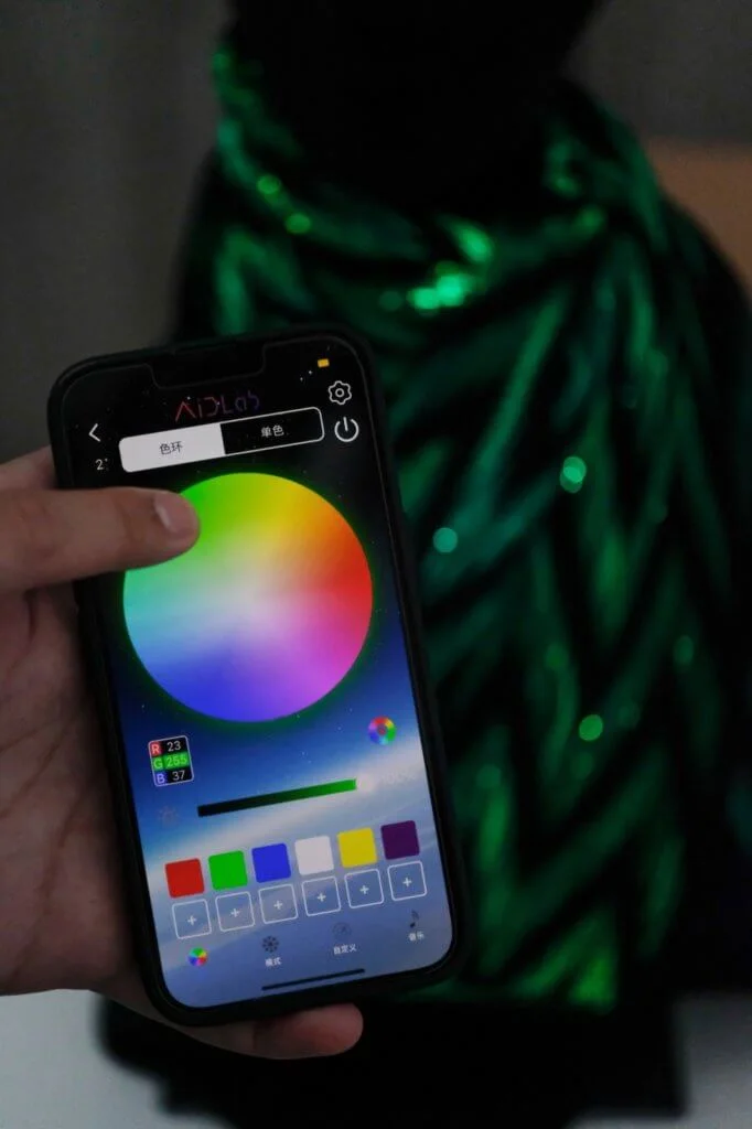 陳博士口中的user experience,指布料的手感,也指向光纖布的用途,她邀請我們走進一個密閉的光纖布展示空間,這無疑是進入衝擊視覺的互動廳,貌似縮小版的草間彌生沉浸式體驗,輕輕凌空揮手,觸發微小的相機感應,光纖就會隨着手的方向從藍色變成紅色,改變整個環境的感覺,有點像在玩遊戲。但等一等,好玩歸好玩,這有實用性的考量嗎?AI光纖布的研究工程師JJ Tan說,應用光纖布的範疇有三:時裝、室內設計、復康,無論是哪一個用途,都走在「服務人」的軸線上:「我們與香港聖公會福利協會合作,在地區康健中心設置了三幅像這樣的AI光纖布,大家沒事做可以跟布來點互動,可能是擺動手勢,或者做一些身體動作;光纖布能鼓勵他們多些伸展和刺激多感官。」用肢體來觸發光纖還有一個原因,就是拉近用家與布的距離,陳博士進一步解釋:「有人問何不用聲音和臉部辨識,非要手勢識別(gesture recognition)不可,那是因為動作能跨越文化、年齡和各種能力,你不需要一本很厚的說明書,一個簡單的動作就可以直接得到布料即時的反應。」方便人的生活,科技本來就應當如此。