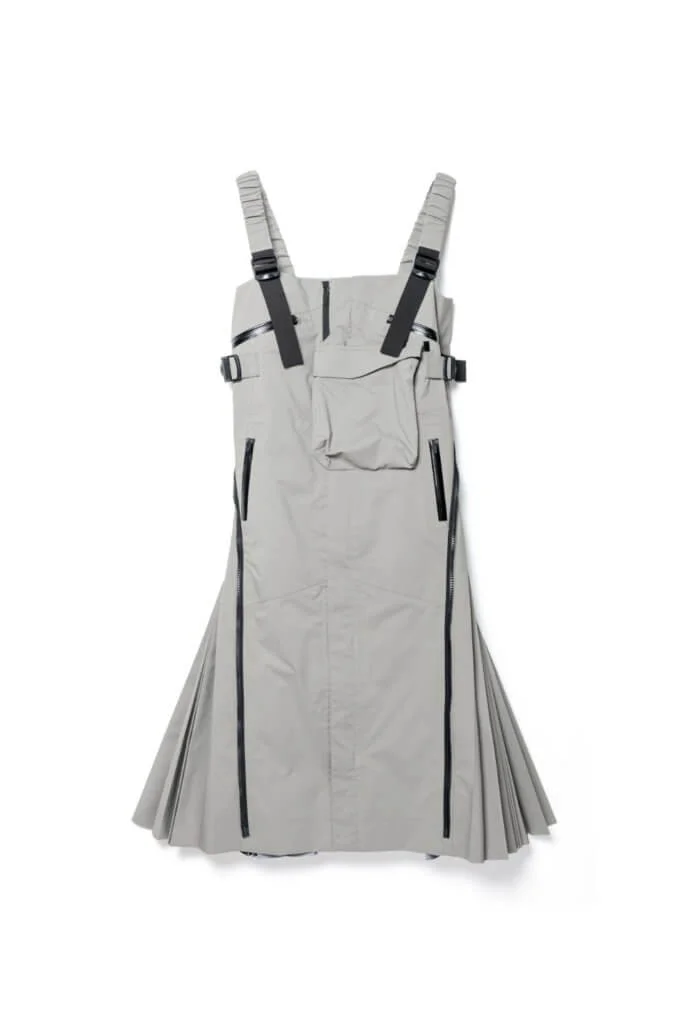 全新聯名系列中,融合了 ACRONYM 設計師 Errolson Hugh 的標誌性功能細節和 Sacai 的物料,打造多款男女服裝。系列以淺灰色和黑色為主打造機能性服飾,布料同時保留了 ACRONYM 著名的三層防水物料,適合不同天氣穿著,這次合作同時是 ACRONYM 首次推出女裝連衣裙款式,緊扣結合主題,體現出 Sacai 的中性美學。