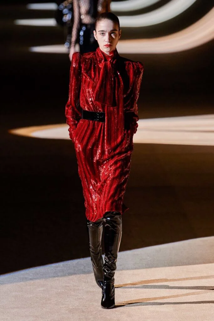 承傳Yves Saint Laurent先生對資產階級 (Bourgeoisie)的獨特見解,今季Anthony Vaccarello以設計突破傳統規則,解放八十年代Bourgeoisie的刻版印象,換以危險、充滿挑戰的形式呈現一種僅屬Saint Laurent女人的形象。