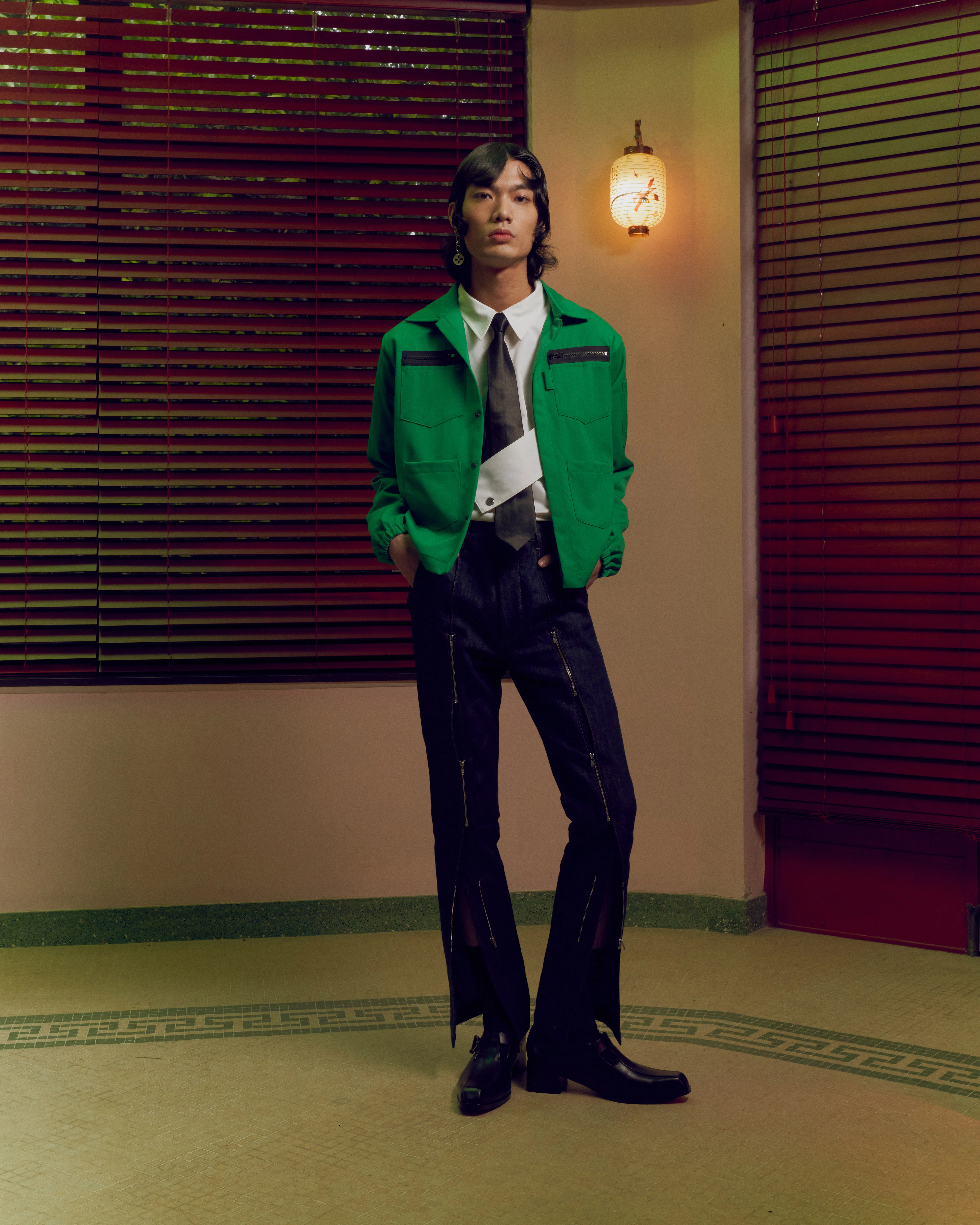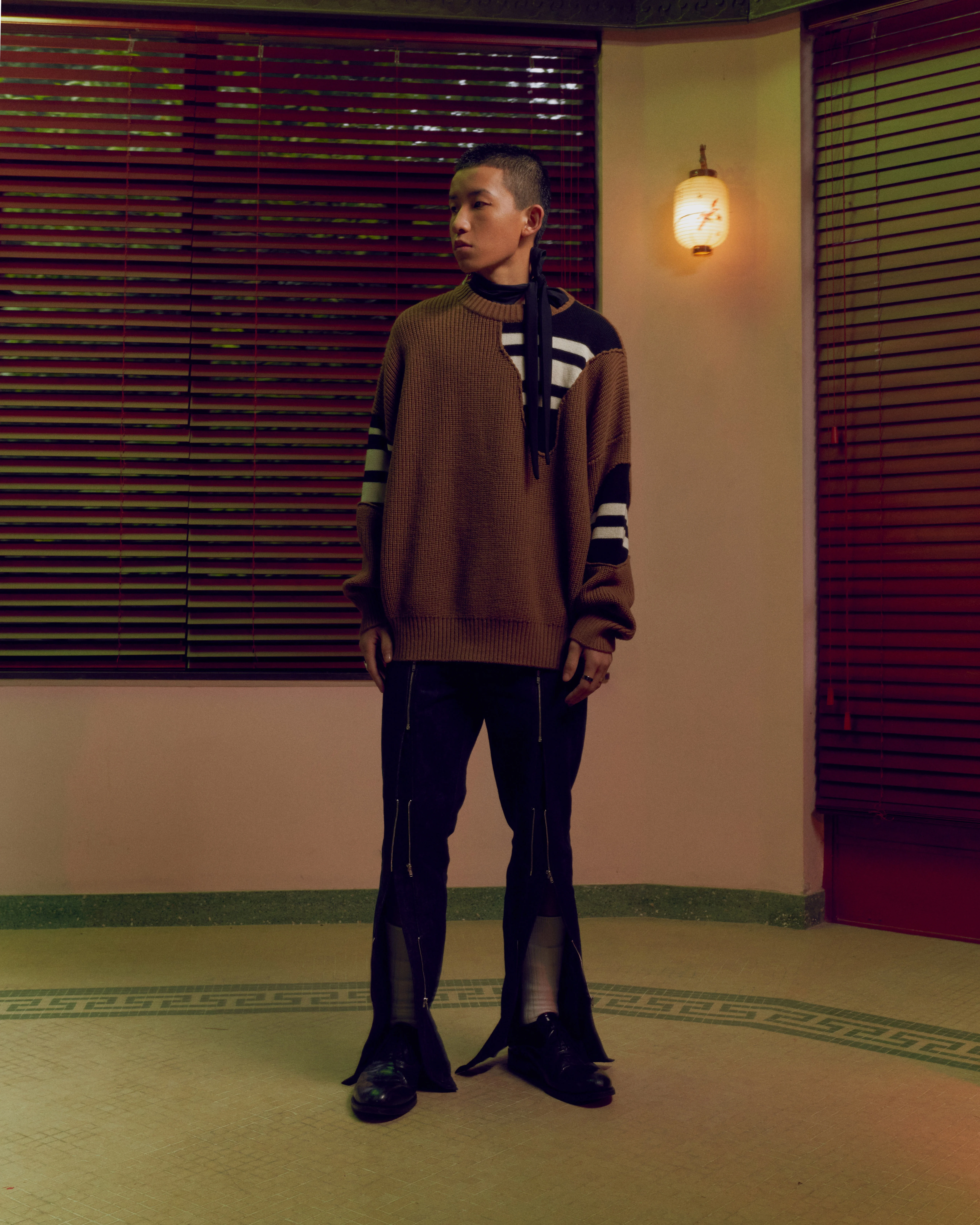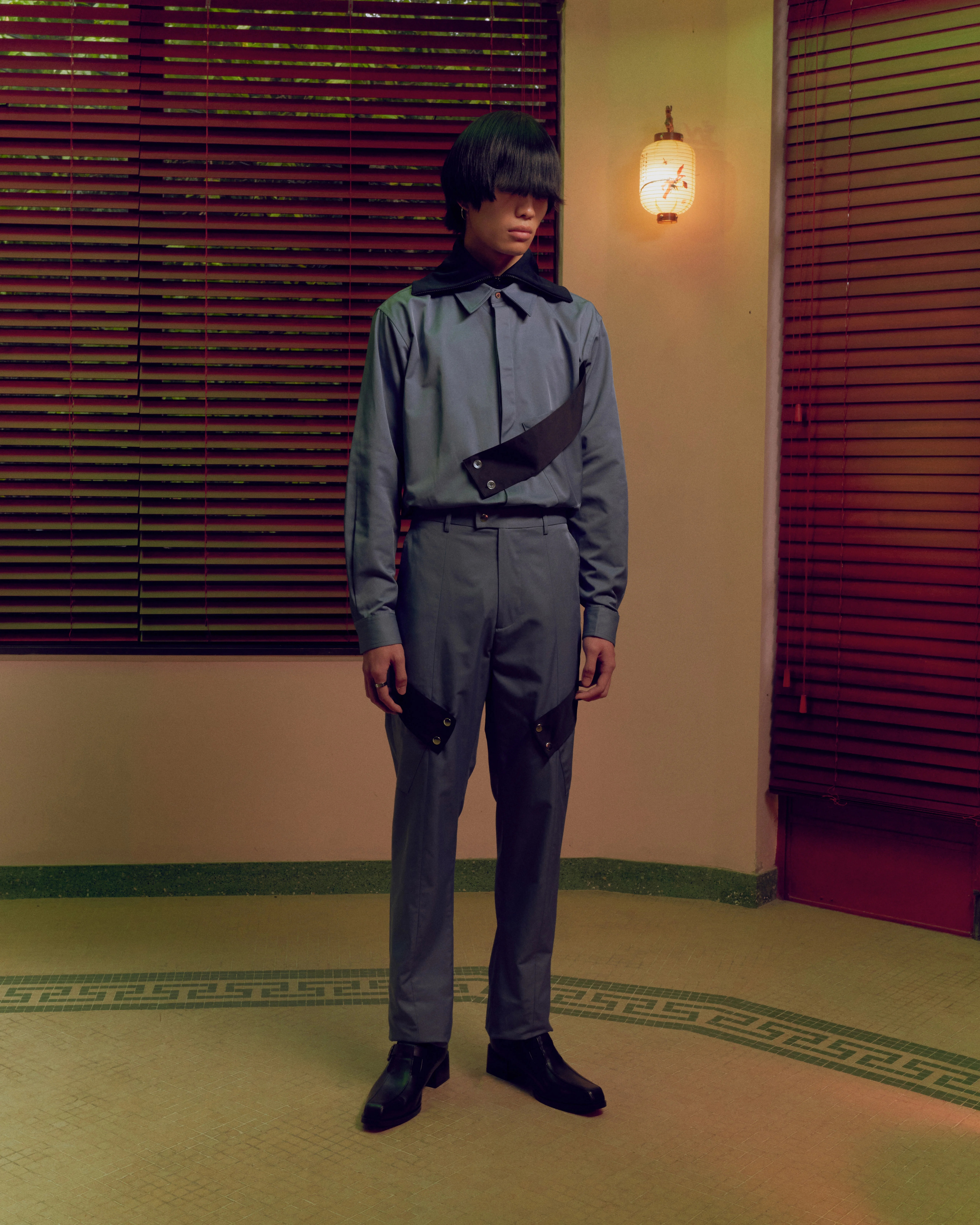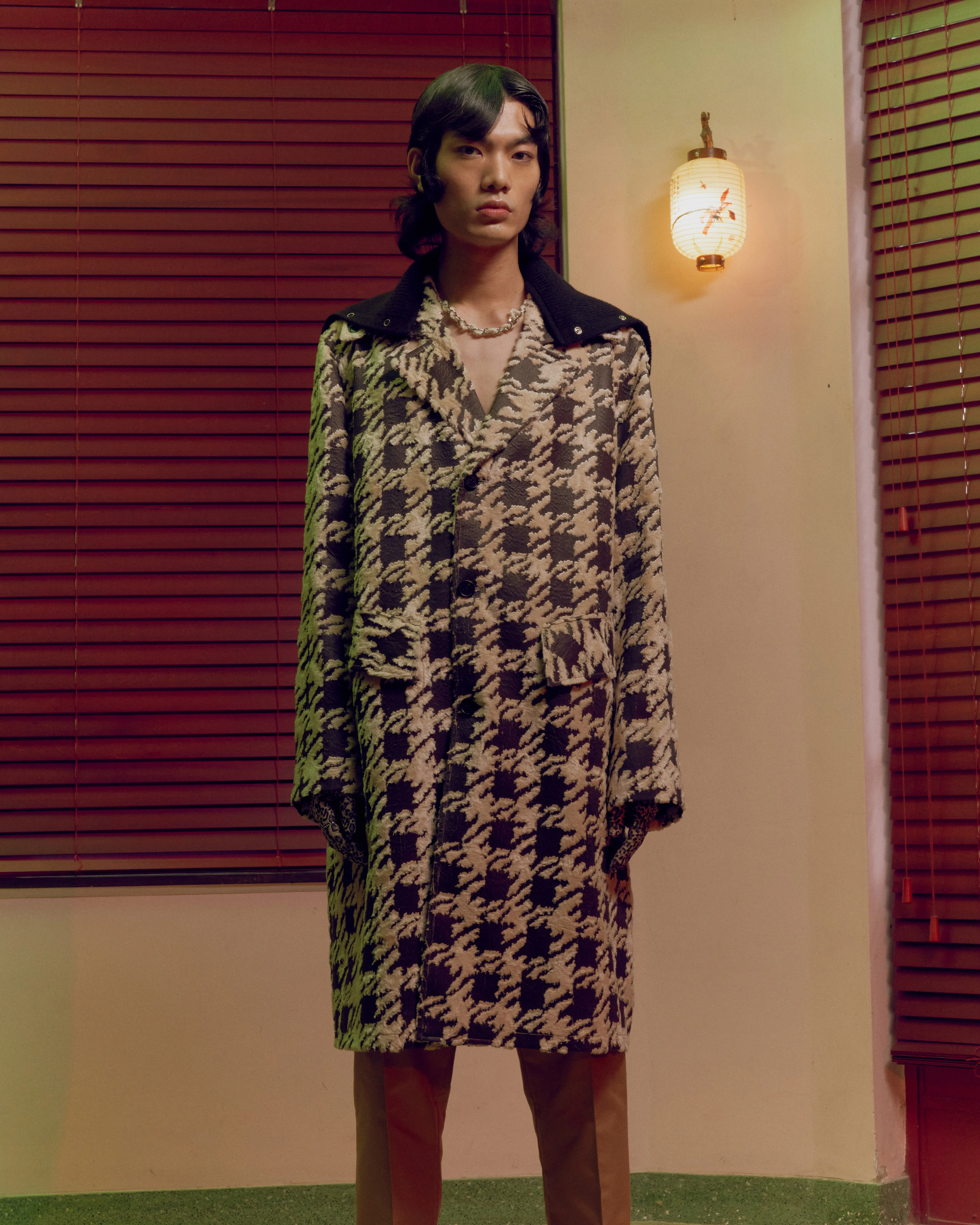 The World is Your Oyster時裝展的影片和新系列均以「家」為主題。疫情讓人無法出走,大家留在家中的時間都比以往多,經常離港的兩位設計師Calvin Chan和Joyce Kun,亦終於有時間去探索一下自己的家鄉文化,靈感亦油然而生。留守家中的期間,他們翻開兒時舊照,發現種種被遺忘了的回憶:自己原來有過成為水手的夢想、家中破舊的傢俱裂痕、父親的七十年代喇叭褲造型、港式瓷磚圖案、母親親手修補的沙發……這一切都成為了創作的能量,轉化成系列中的海軍藍色、卡其色和黑色,又注入檸檬黃、天藍、古銅色和鵝毛灰等鮮明色調作點綴,營造出「家」獨有的溫馨感覺。