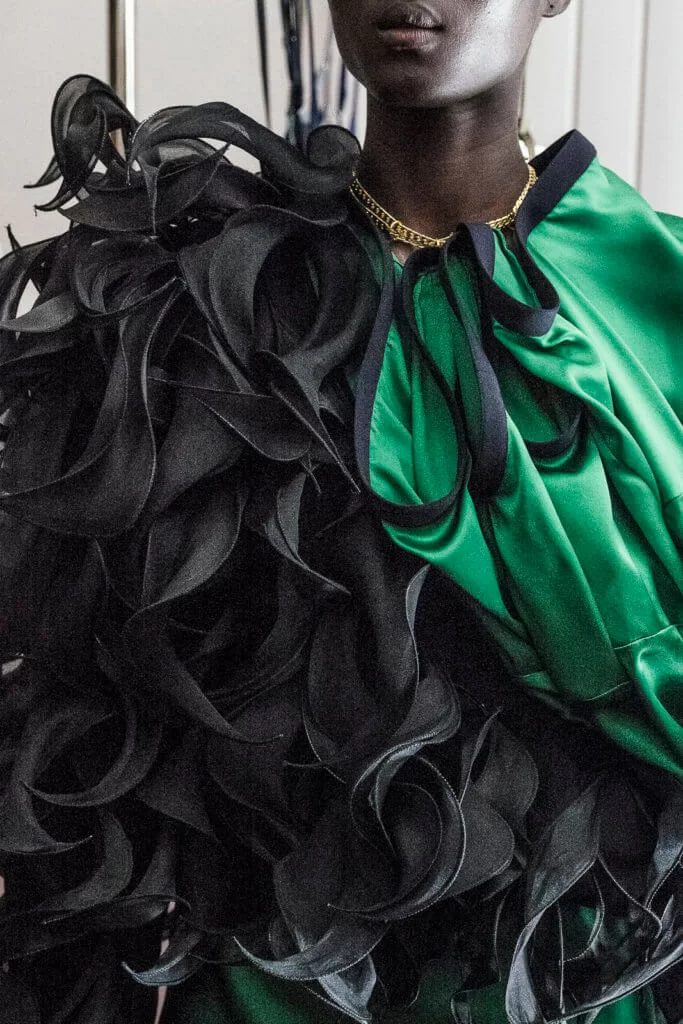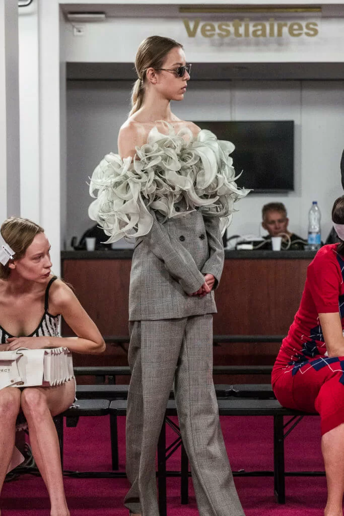 Glenn Martens最近在一些衣服的吊牌上增加了一張“Unisex Sizing”的表格,上面列出男女士的尺寸參考,方便不同的性別在同一件衣服上選對尺寸。雖然近年不少品牌選擇將男女裝時裝騷合併,但風格強調無性別的Y/Project依然分開男女裝騷,但有趣的是,部分衣服會在兩場騷中重複出現,這確實成功讓人無視了衣服常被預設的性別羣組。Glenn Martens表示,他從不為性別定下界線。