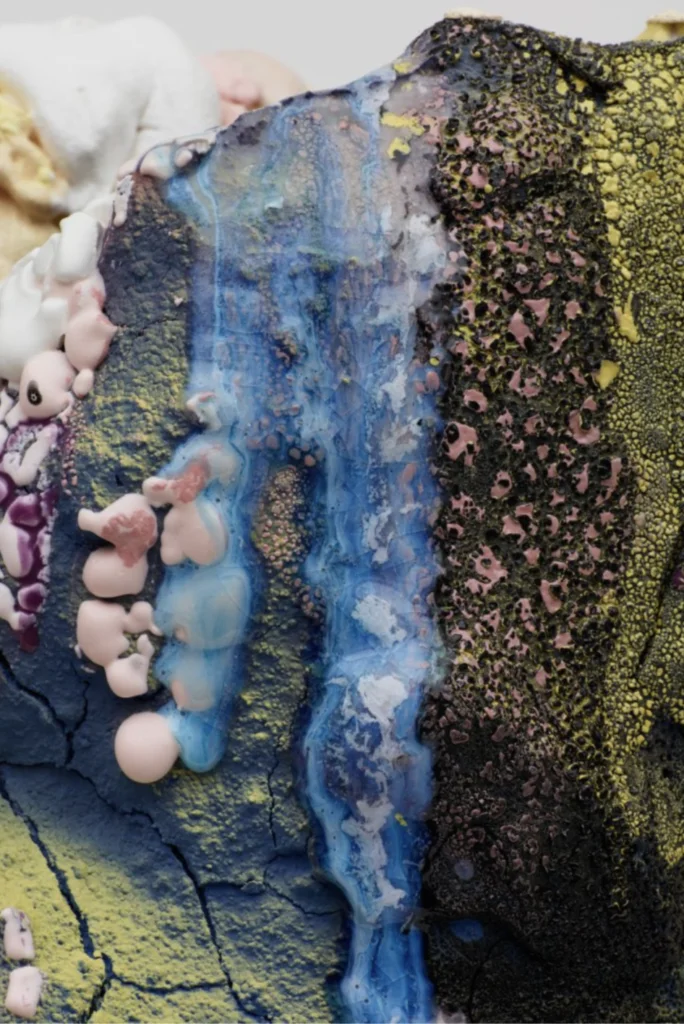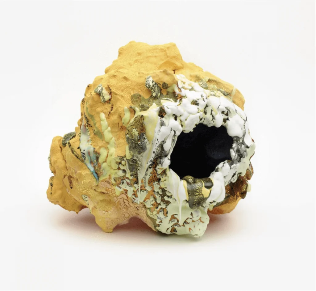這位被外媒譽為「雕塑界壞孩子」的藝術家Brian Rochefort其實大有來頭,他二〇〇七年畢業於美國羅德島藝術學校,曾在洛杉磯、紐約、布魯塞爾等地舉辦展覽。向來鍾情雕塑藝術的Kris Van Assche,自然留意到這個年輕藝術家的獨特風格。Brian與Kris交流時曾說過:「從剛開始接觸陶藝,我便喜歡挑戰像橙色或紅色等顏色;而在一件作品中,我通常不會用多於三種顏色,卻希望將同一種顏色的不同層次、不同質感塑造出來。」因此,他的雕塑充滿流動性,同時像有生命、有呼吸的有機體,正好呼應是次Berluti以火山和植物作為靈感的系列。