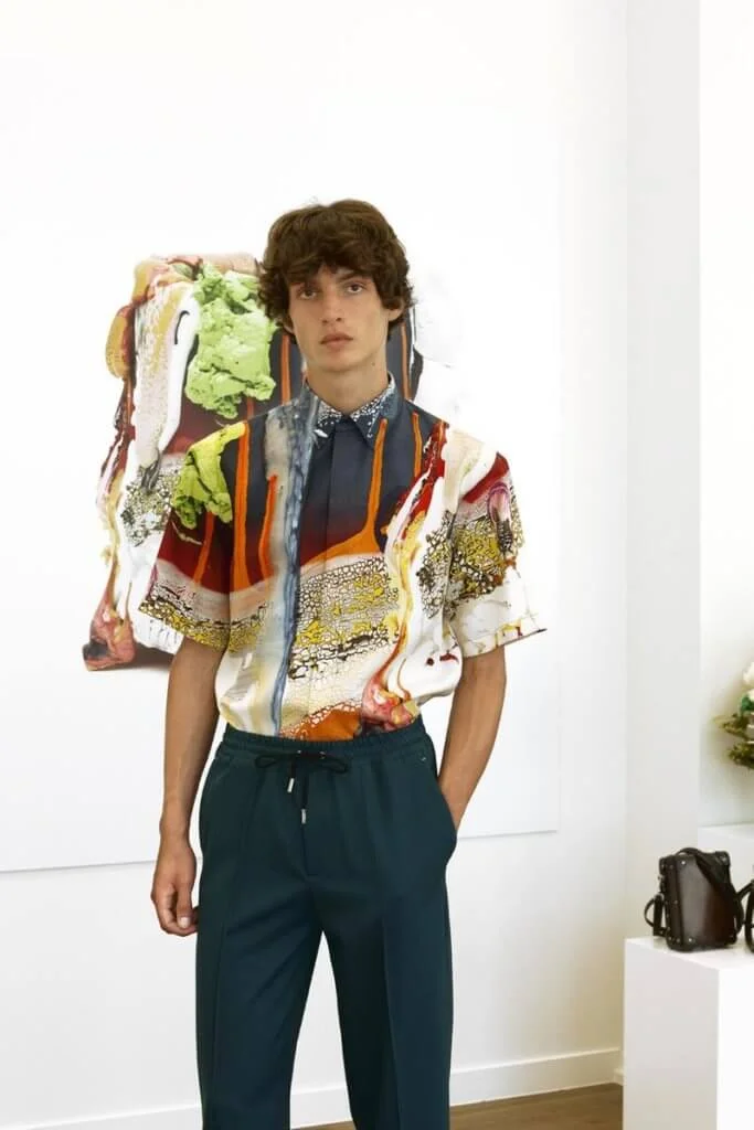 這個系列是Kris接任Berluti創作總監以來,首個與藝術家聯乘的作品。他用了兩年熟悉品牌的DNA,包括風格、剪裁、歷史等,再在其中注入自己對藝術的熱愛。「是次聯乘主要循兩種方式:第一種方式比較實質(literal),為Brian的作品拍攝照片,再將當中的紋路、細節、質感、色調等化為全新的印花,在絲質襯衫上呈現斑斕的色彩;第二種方式則更有Berluti風格,將其雕塑中的藝術元素融合品牌歷史悠久的Patina染色方法,透過傳統工藝創作嶄新的皮革花紋。」