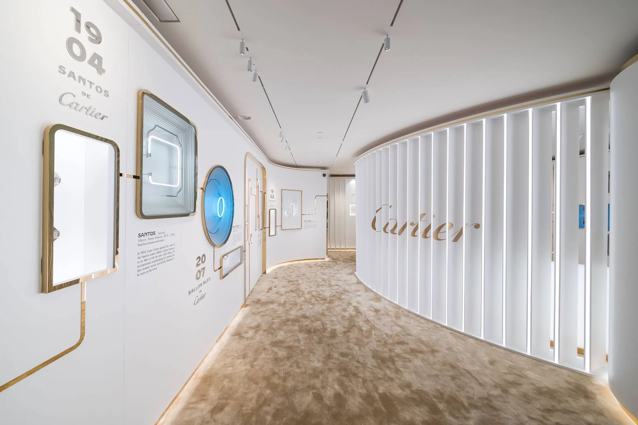 「設計理念」多重感官體驗佔地380平方米,滿載腕錶珍品及介紹影片的弧型製錶展牆,探索Santos、Tank、Panthère和Ballon Bleu傳奇腕錶的設計理念及箇中故事。