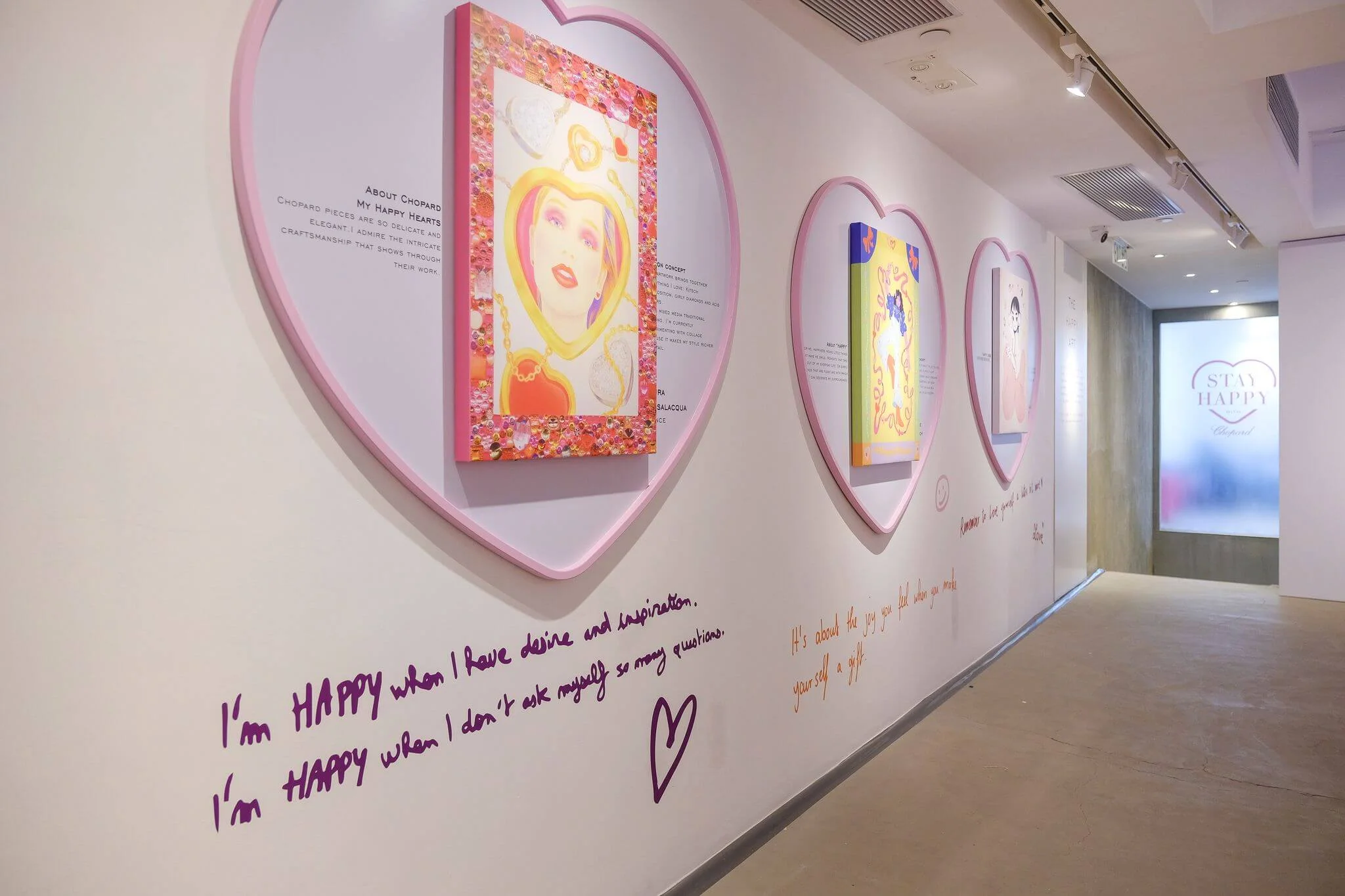 Chopard 於中環Over the Influence藝廊舉行「 My Happy Hearts 」 期間限定活動,展出My Happy Hearts系列珠寶外,品牌還邀請了來自不同地方的插畫師和藝術家各自創作能展現他們心目中的「自我,真我,My Happy Hearts!」傳遞希望和愛、喜悅和快樂的正面訊息。