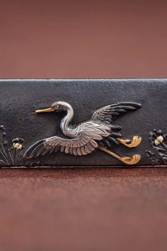 為紀念這段意義非凡的旅程,學院將於十二月十一日推出展覽《赤銅:從武士裝飾到珠寶》,首次全面展示赤銅(shakudo¯)的迷人歷史與藝術價值。這是一場跨越東西方、糅合傳統與現代的文化旅程。展覽分為三大部分,全面解構赤銅的技術特性、工藝歷史與全球影響力。赤銅曾是日本江戶時代武士刀的裝飾材料,這些元素以刀柄和刀飾形式見證了武士文化的榮耀。而隨着日本於十九世紀中期結束孤立政策,明治時期的現代化浪潮帶來了巨變:武士階層的消亡及一八七六年禁佩刀令,讓赤銅匠人轉而投身珠寶製作。