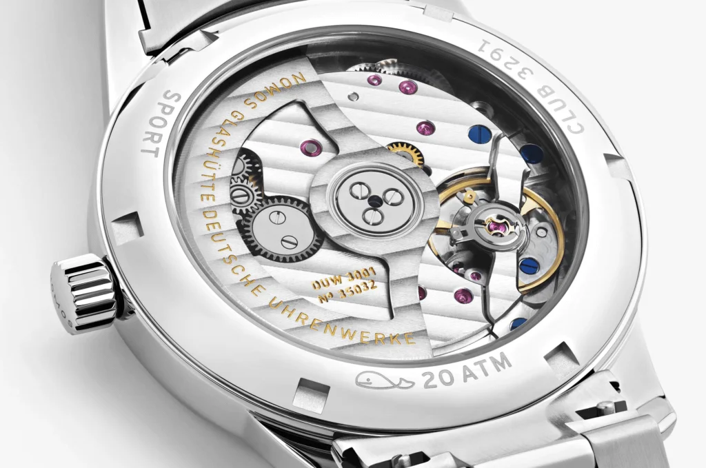 ⾼精度 NOMOS DUW 3001 neomatik 機芯,厚度為 3.2 毫米。擺陀隨着手腕的活動而旋轉,就可以達到上鍊的效果。