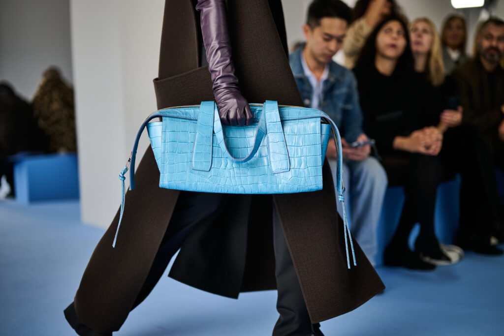 輕盈亦是本季主題,透過貼身針織與平紋布勾勒線條,化成精簡克制的風格。各種鮮明配飾如鱷魚壓紋耳環、大手袋及牛仔靴等點亮造型,令女性散發自信的氣場。